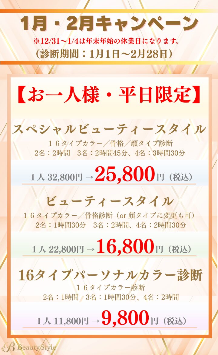 16タイプパーソナルカラー診断/ベストカラー診断/骨格診断