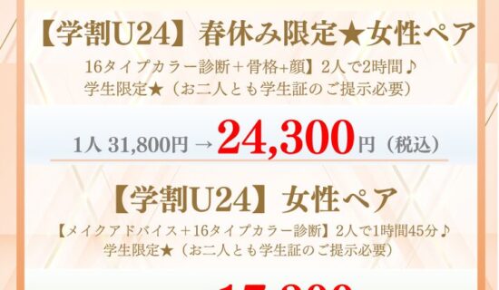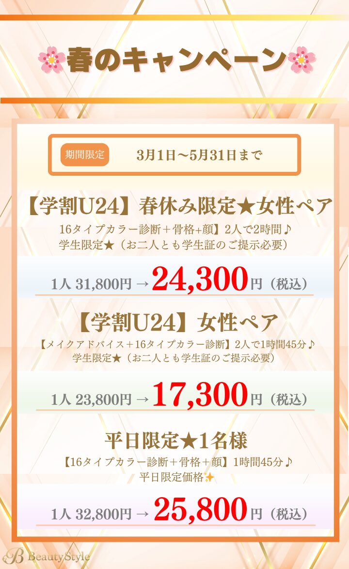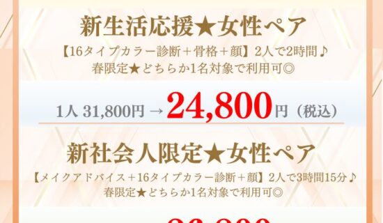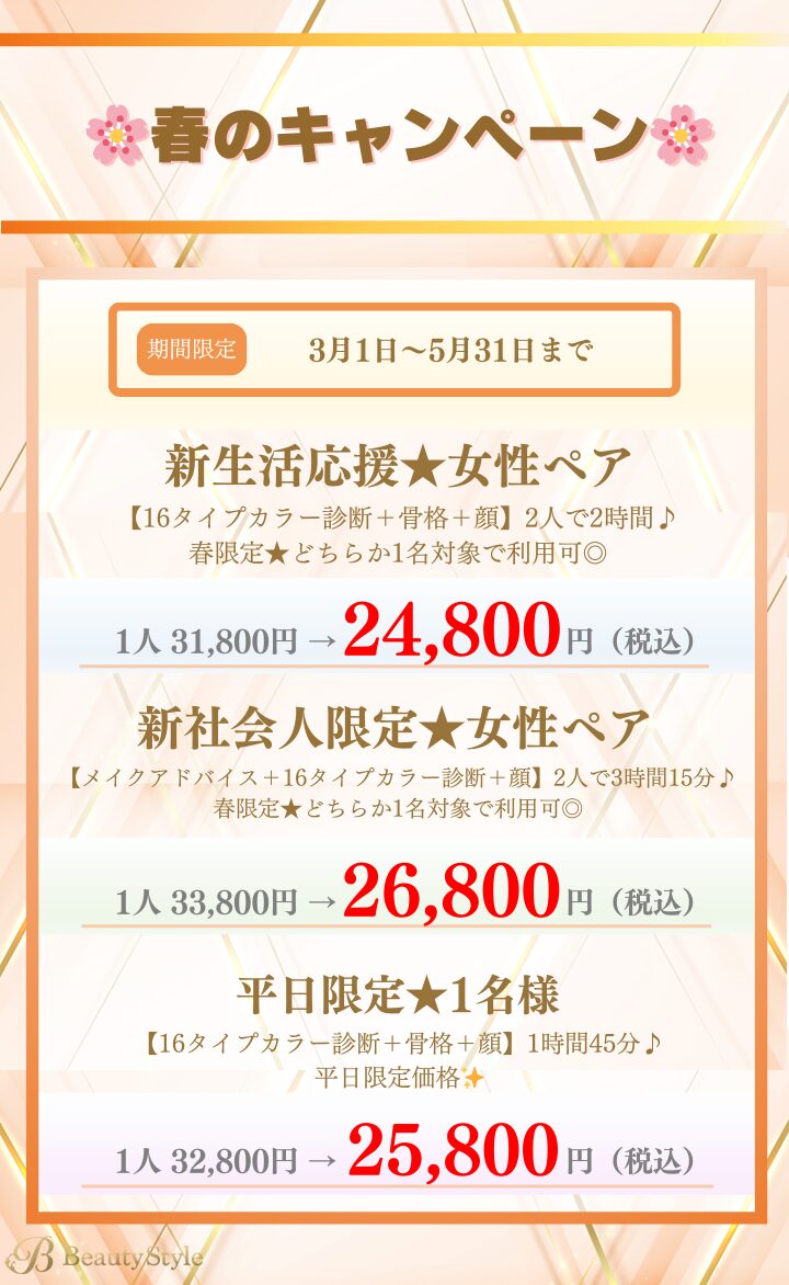 ベストカラー診断をご希望の方は、レギュラーメニューをご選択のうえご予約ください。